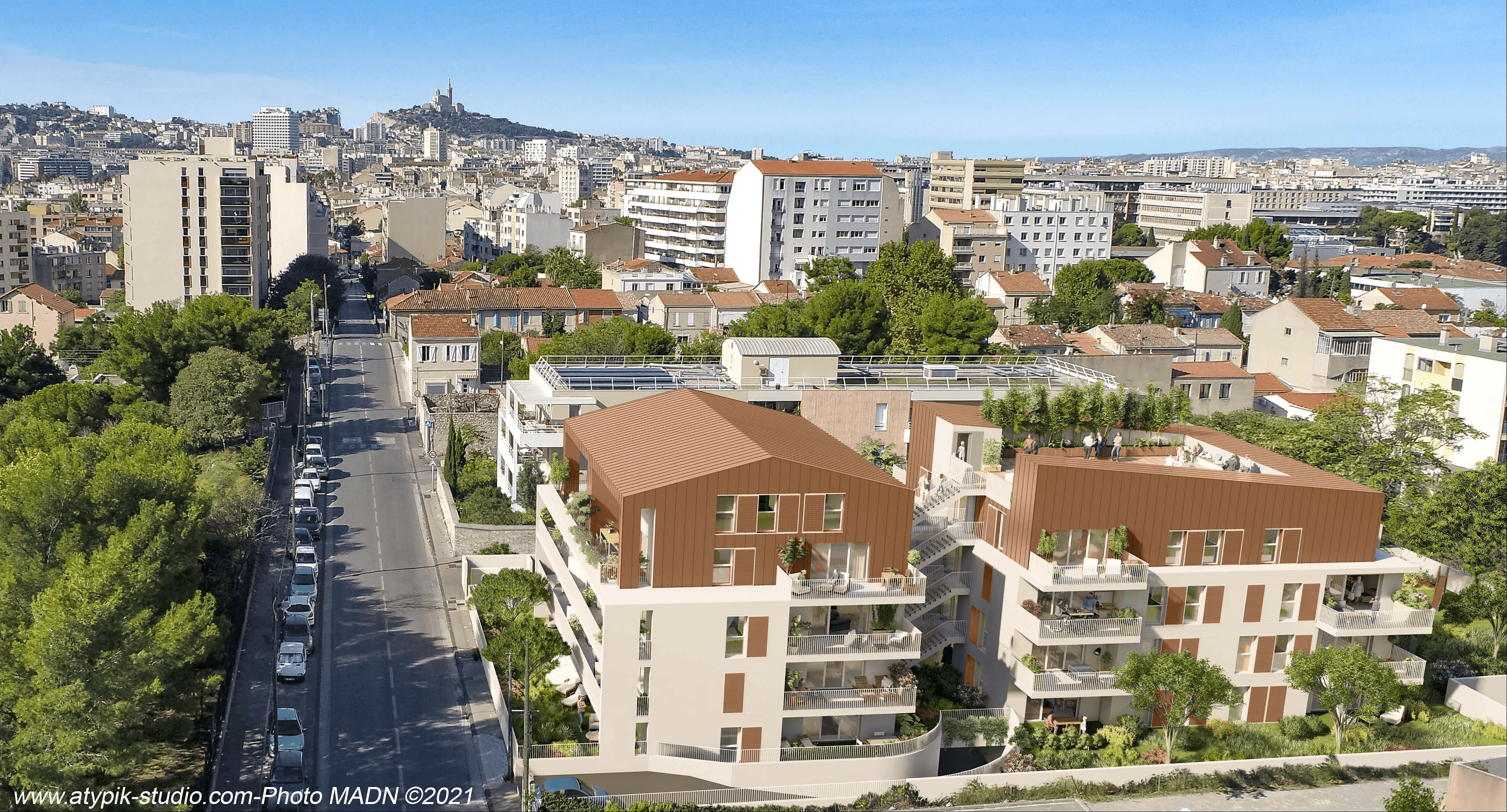 Le projet comprend la réalisation de deux bâtiments en R+2 de 33 logements en copropriété, coiffé d’un attique en structure bois. Les bâtiments sont reliés entre eux par une circulation verticale ouverte et une cour centrale paysagée.