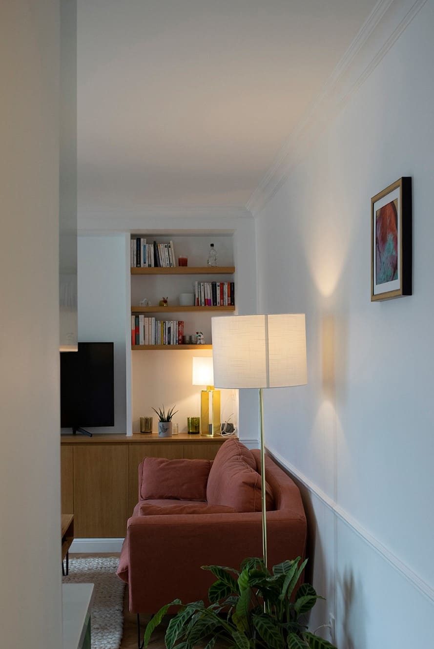« J’ai été surpris par les nombreuses astuces proposées afin d’optimiser l’espace de cette petite surface. Camille a toujours eu à cœur lors de faire quelque chose d’esthétique sans négliger le côté fonctionnel. L’appartement est très agréable à vivre, spacieux, lumineux, et possède désormais de nombreux rangements. »
