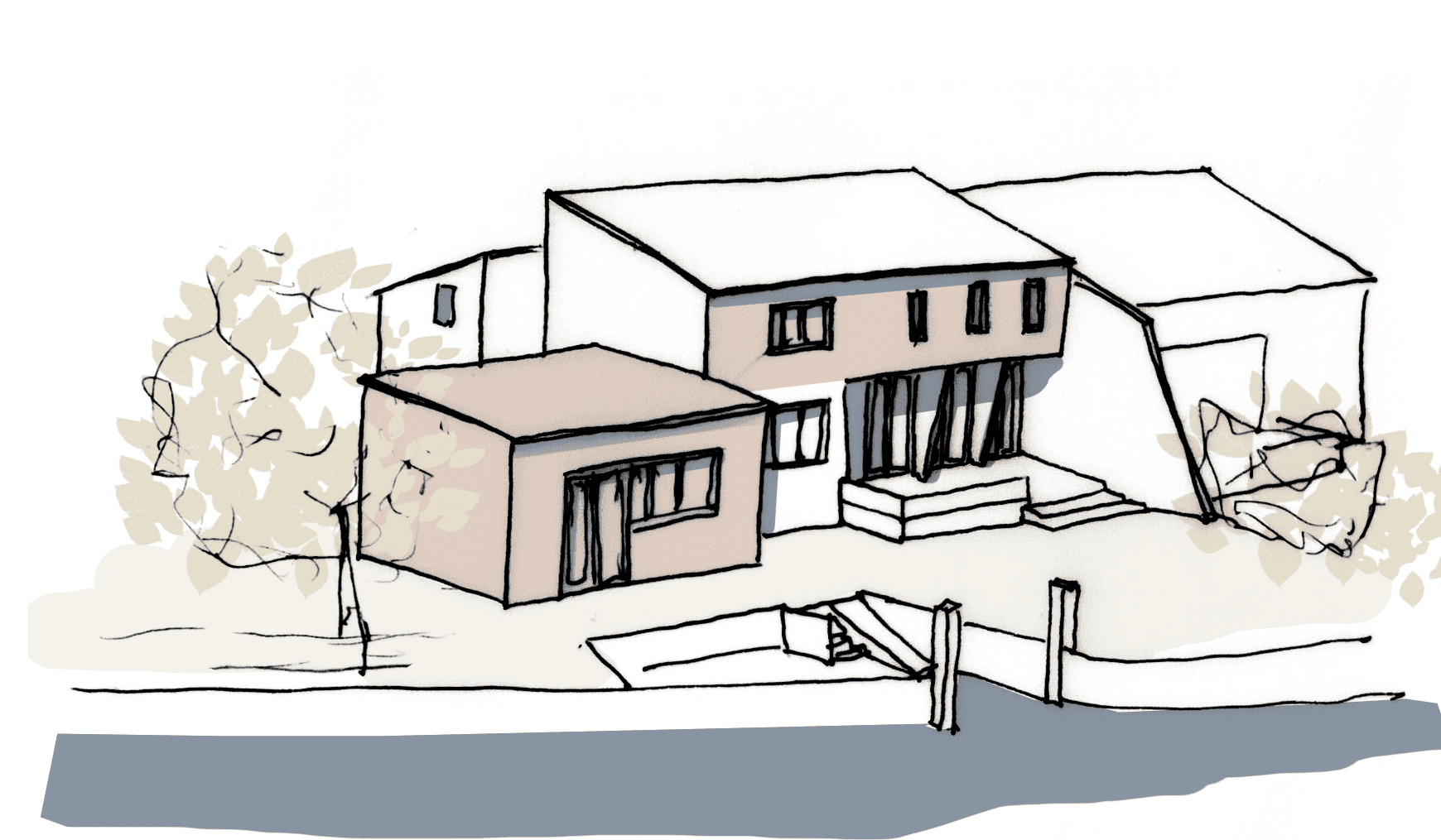 Cette maison familiale entame sa métamorphose pour accueillir de nouveaux usages et de nouvelles manières d’habiter. Le projet combine rénovation, surélévation et extension afin de créer une grande pièce de vie lumineuse, des logements d’accueil indépendants et une circulation adaptée aux personnes à mobilité réduite. L’ensemble explore la modularité des espaces, permettant d’habiter et de partager autrement, dans un équilibre entre intimité et convivialité. Les interventions privilégient les matériaux biosourcés, le réemploi et la maîtrise de l’imperméabilisation, dans une démarche sobre et durable.